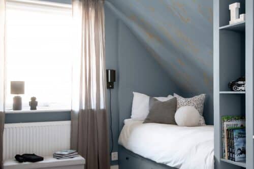 Börja tapetsera i det hörn som är minst i blickfånget i rummet. Läs mer om hur du går tillväga i vår guide tapetsera steg för steg.